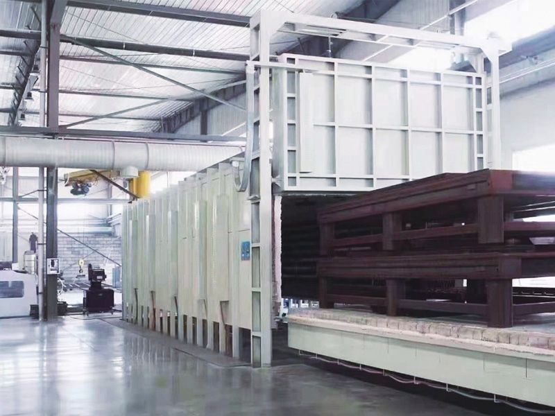 结构形式 GAS POWERED TROLLEY FURNACE由炉体,台车及其传动机构,炉门及其升降机构,供气系统,助燃风系统,燃烧系统,排烟系统以及电气控制系统组成。运用范围 SCOPE OF APPLICATION主要用于钢件,大型铸锻件,轴件,钢材等的退火,回火,淬火,正火等热处理加热使用。使用温度 OPERATING TEMPERATURE正常情况下温度在500~1200C设备特点 EQUIPMENT CHARACTERISTICS1、炉门升降采用电动升降机构,可选配电动葫芦、提升机、卷扬机。2、台车驱动采用自行走、卷扬机拖动、钝齿轮等运行方式3、台车与炉壳间密封可采用砂封、柔性密封、迷宫式密封、电动推杆式密封、汽缸压紧密封等方式4、炉衬可选用砖结构,全纤维结构,复合结构等材料。5、燃烧系统可采用大小火控制、时序脉冲、连续比例等调节方式。6、采用喷流辐射式、插入列管式换热器,节能提高约10%~15%。7、可根据用户要求采用国产或进口智能程序控温仪表,控温精度高。8、可根据用户需求,实现炉体变容加热,包括中间多段变容和后墙移动式变容9、排放标准可根据用户需求,实现NO≤150mg/m³、 NO≤200mg/m³、NO≤300mg/m³等排放标准10、烧嘴可根据工艺需求,可选用常规烧嘴、蓄热式烧嘴等技术参数: